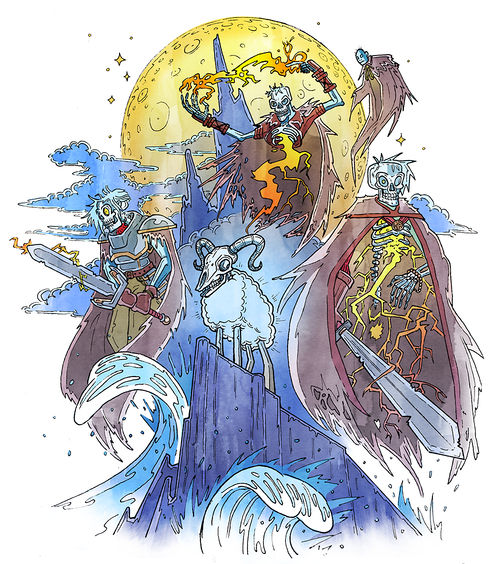 A bansheep is a sheep with a fleshless head and iridescent blue wool.