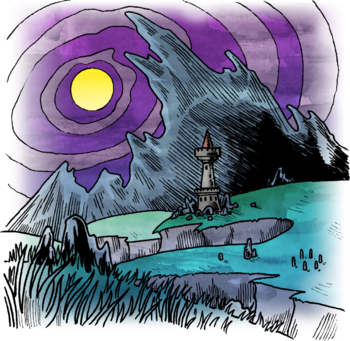 The land where [[extradimensional cephalopod|Extradimensional Cephalopods]] lurk is a land of beautiful green fields, broken up into many flat cliff layers. | |||